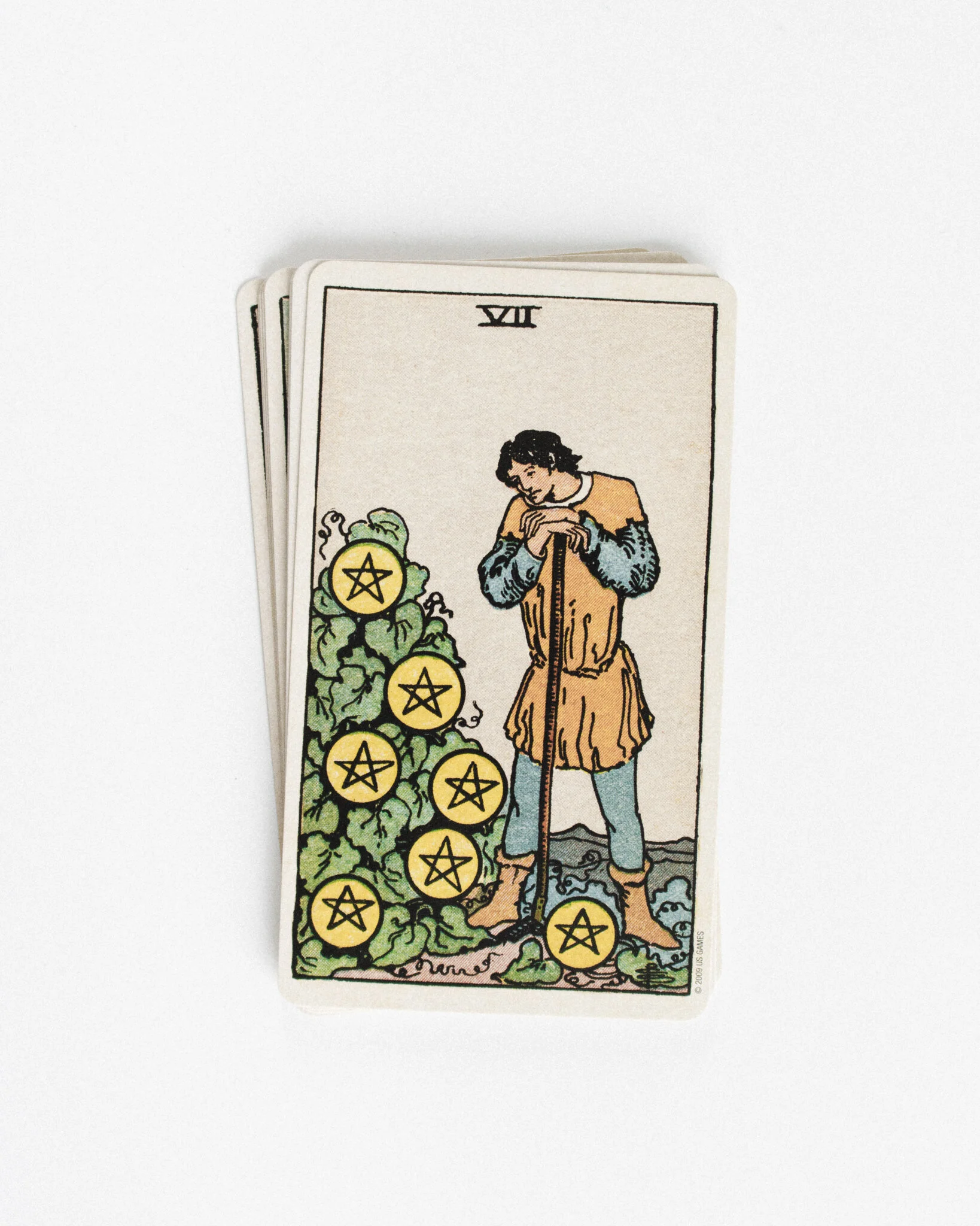 Seven of Pentacles kuvastaa hidasta kasvua ja tuloksia, jotka saavutetaan pitkäjänteisen työn ja suunnittelun seurauksena. Kova työ kantaa hedelmää, mutta maltatko odottaa niiden kypsymistä?